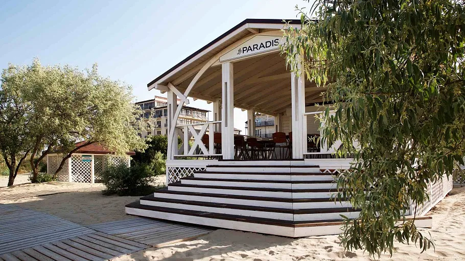Это идеальное место, где можно укрыться от палящих лучей солнца, размяться после долгого лежания на пляже и подкрепиться. Посетителям предлагают разнообразные прохладительные напитки и вкусное мороженое, что позволяет насладиться отдыхом в жаркую погоду. Здесь также можно пообедать, не прерывая пляжный досуг — в меню представлены супы, вторые блюда и закуски, что сделает ваш день на побережье еще более комфортным и приятным.